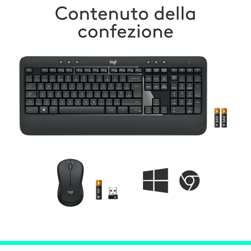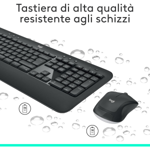 MK540 Advanced e' un kit mouse e tastiera wireless che risultera' familiare sin da subito realizzato per la massima precisione, comfort e affidabilita' . La tastiera standard e' dotata di tasti di consistenza, dimensione e forma familiari e il mouse sagomato e ambidestro e' stato progettato per adattarsi a entrambe le mani.