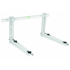 Questa staffa universale è compatibile con tutti i modelli split e consente una doppia installazione: su pareti laterali o su mensole, offrendo flessibilità nelle diverse esigenze di montaggio. Per garantire un montaggio perfetto, è dotata di livella a bolla integrata che assicura la perfetta inclinazione e allineamento della struttura.